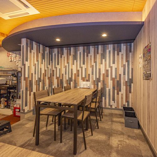 当店では4人掛けテーブルを2つご用意しております。団体様のご利用も歓迎で、気軽にお集まりいただけるスペースを確保しています。ぜひご利用ください。